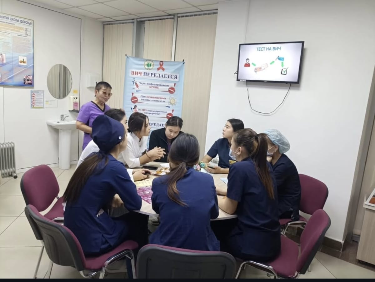 31 октября 2025 года медсестра кабинета здорового образа жизни Клиева Ж.К. провела круглый стол среди студентов Жамбылского медицинского колледжа на темы: "Профилактика ВИЧ/СПИДа", «Здоровый образ жизни», «Вредные привычки», «Правильное питание». Ответила на интересующие вопросы, показала видеоролик, раздала буклеты